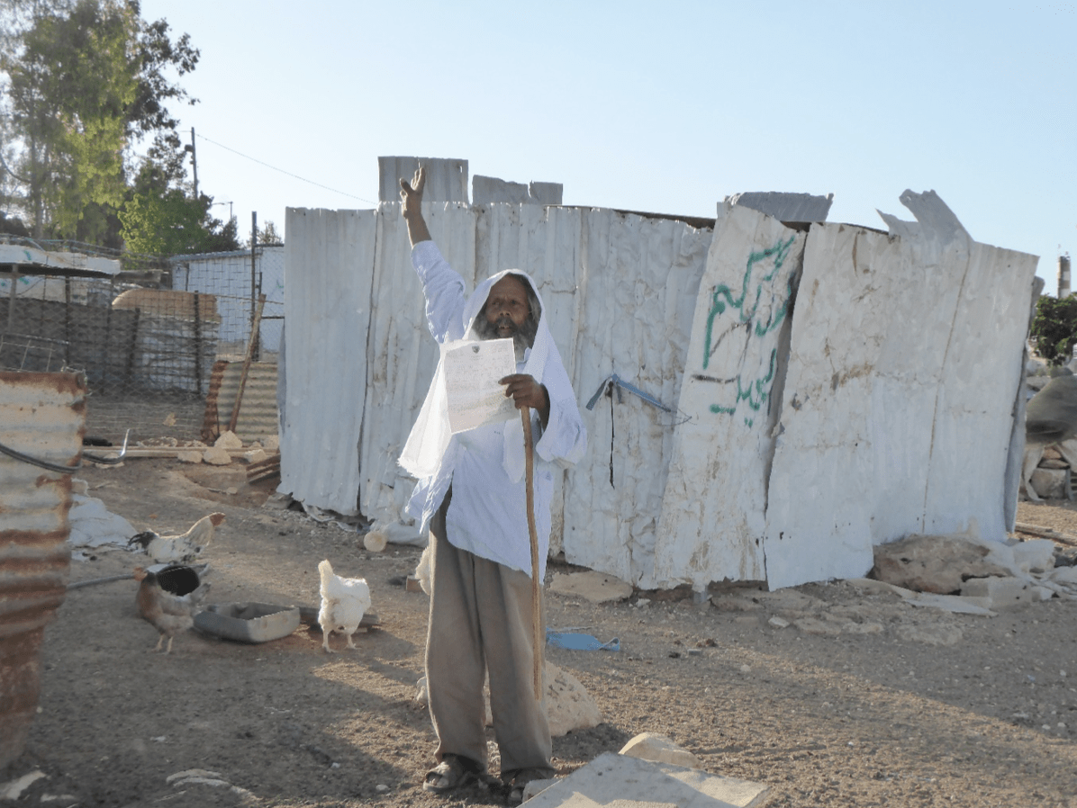In tribute I enclose a picture of a Bedouin elder, Sheik Suleiman from the Bedouin village of Um Al Kher in the South Hebron Hills. I took the picture on 30th June 2016 whilst serving as an Ecumenical Accompanier. Haj Suleiman is protesting in front of a shelter made from crumpled metal sheets from a previous Israeli army demolition. The metal sheets are from a house provided through EU development assistance. He is holding in his hands a ‘demolition order’ stating that the soldiers will be back to smash up more of the village. On the 5 th January of this year Sheik Suleiman was run over by an Israel truck and dragged along the road. They left him lying in the road with broken bones, a fractured skull, and internal injuries. He died two weeks later in a Hebron hospital. He was a small man physically but was fearless in challenging Israeli soldiers and police when they went to harass the Bedouin community of which he was a member. He embodied the very spirit of Sumud, that is steadfast perseverance and resistance to occupation.