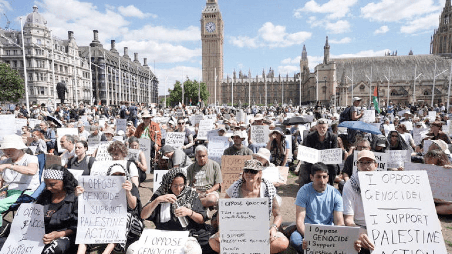 Many people in Britain are deliberately defying the designation of Palestine Action as a terrorist organisation by the British government. On Saturday 9th August more than 500 people were arrested in Parliament Square, Westminster for holding up placards with the words, ‘I oppose genocide: I support Palestine Action’. Among the older women arrested at recent protests are a retired consultant surgeon, a retired magistrate and a retired Anglican priest. Palestine action does cause criminal damage to property where weapons are manufactured for use by the Israeli army. It does not harm people. The British Government on the other hand still exports weapons to Israel that are used to kill people in Gaza. So, who, we should ask, are supporting terrorism?